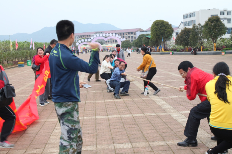 在下午的“拔河”比赛中,参与拔河的队员,出场时个个摩拳擦掌,精神饱满。拔河一开始,各队队员心往一处想,劲往一处使,当两队处于胶着状态时,队员们人人咬紧牙关,坚持、坚持,再坚持;啦啦队员齐声加油,活动现场呐喊声、喝彩声、欢笑声不断,将活动推向了高潮。